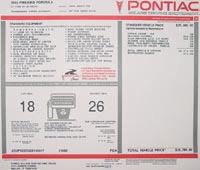 Once again, I purchased my Firebird from Saadallah El-Jundi at Sewell Pontiac in Dallas. I ordered the car on July 9, 2001. It was scheduled to be built the week of August 13, 2001. It arrived at Sewell on August 28, 2001. I traded the 2000 Trans Am in on the Formula. I picked the car up in the condition it was delivered to Sewell. All the plastic was still on the car. I didn’t want anyone to touch or wash my car.