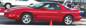 This was my first trip to the drag strip in the new Formula. The car was bone stock other than the wheels and tires. The car had 1100 miles on the odometer. I was very happy with the runs considering track conditions and weather. The car weighed 3520 with me in it.